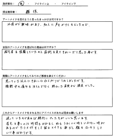 長い先まで考えながら安心して任せられる、そんなアートメイククリニックを目指しております。